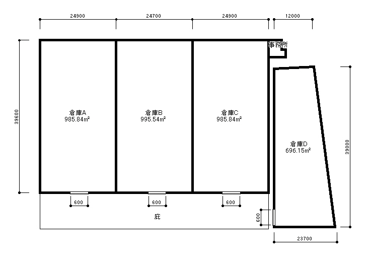 内 訳 1階倉庫 298.21坪×2、301.15坪×1、210.58坪×1棟 事務所5.85坪 合計1114坪